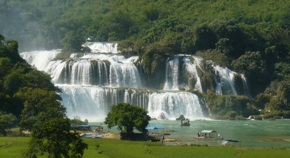 Der nächste Tag war zurecht mit einer miesen Stimmung unseres Tourguides überschattet. Er monierte unser Teamverhalten. Die eigenwilligen Fahreinlage hatten uns nur zusätzliche Mühen und Kosten erzeugt. Erst nach einer Aussprache konnten wir die Fronten klären und unseren Fahrtag wieder genießen. Denn heute war ein Loop zu den Wasserfällen Ban Gioc an der Chinesischen Grenze geplant. Der Anfahrtsweg und die Wasserfälle erwiesen als eine Augenweide. Die bezaubernde Landschaft an der Chinesischen Grenze entlang ließ alle Unstimmigkeiten verfliegen. Am Abend kehrten wir bei einer netten kleinen Familie ein die aus vielen netten Frauen :-) bestand.